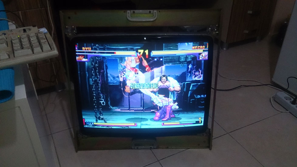 sistemde orijinal arcade monitör vardı ben şuan onu tv ile değiştiriyorum işin büyük bölümü bitti tamamlanınca yaptığım çalışmayı paylaşacağım