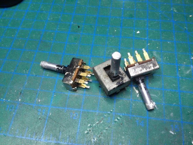 Bir switchin korozyonu o kadar derin ki onun yerine yedek parçadan bir başka switch kullanmak zorunda kaldım zira artık kurtarılacak bir şey kalmamıştı tepesinde, neredeyse plastiğe kadar erimişti aluminyum kaplama...