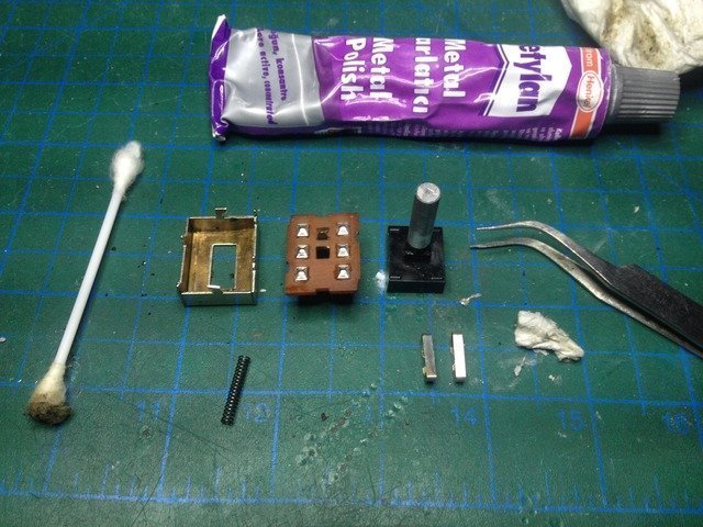 İçindeki kontakları da alkol (IPA) ve metal parlatıcı ile temizleyip parlatıyoruz.