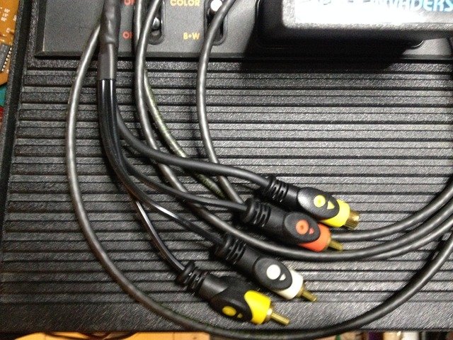 Devrenin video çıkışları için o kadar emek sarfedip onardığım orijinal Atari 2600 kasasını lale soket takmak adına delip geçmeyeceğim elbette... Bunun için Atari 5200 de kullandığım metodu uygulayarak siyah bir UTP kablonun ucuna uçlarını kestiğim 3'lü lale ve s-video kablosunu bağlıyorum...
