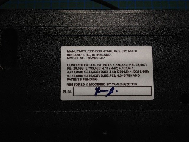 Ve bahsettiğim son kalan işimi de bitirdim. Bu aletin arkasında etiketi yoktu. Elimdeki diğer orijinal Atari 2600'ün etiketini klonladım, dayanıklı olması için laminasyon yaptım, bir de minik bir modifikasyon yaptım