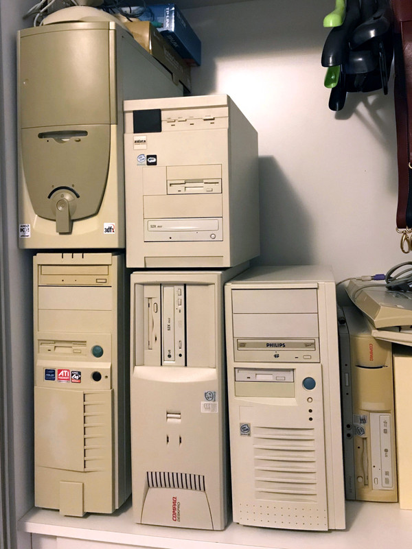 Ayrıca uzun süredir depoda duran ve elimi sürmeye korktuğum (içindeki ve dışındaki pisliği size anlatamam) bir Dell Dimension XPS D333'ü çiçek gibi yaptım.  Konfigürasyon 90% orjinal, sadece 64MB RAM, Voodoo 2 12MB hızlandırıcı ve ESS Audiodrive ES1868 ISA ses kartı ekledim ve mevcut 3c900 10MBit ethernet kartını 3c905 100MBit ile değiştirdim. Yalnız bunu hurda olarak satan kişi floppy sürücü kızağını bir şekilde kaybetmiş olsa gerek ki en alt genişleme alanına floppy veya zip drive takmak mümkün olmadı; orada boşta kalan deliği başka bir kasadan bir kapağı, bir şekilde, uydurarak kapatmak gerekecek.