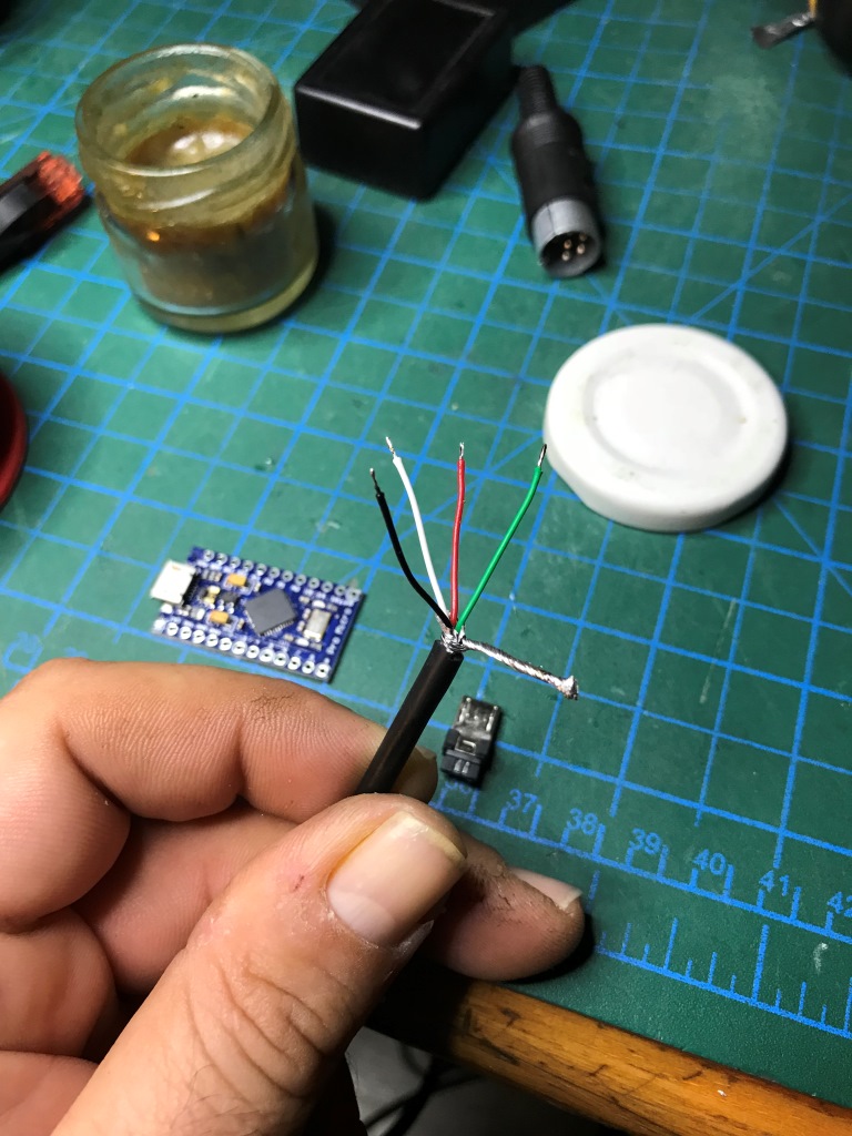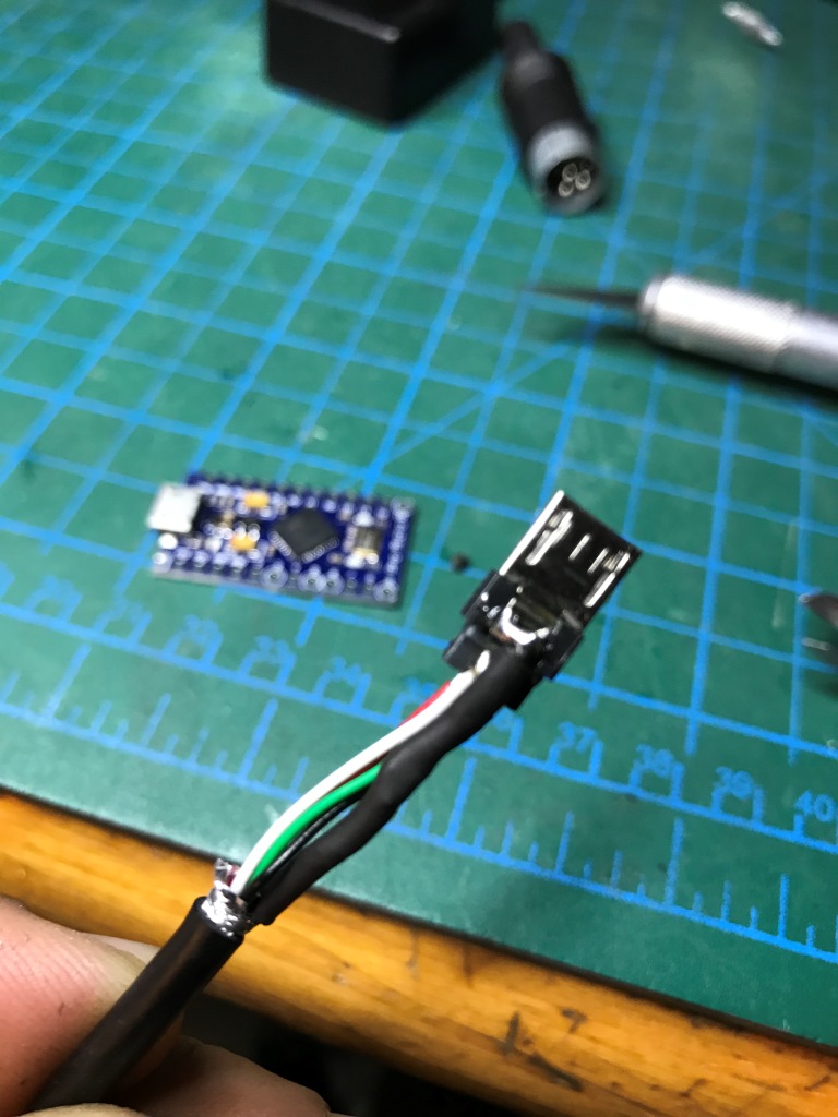 Hatta micro USB kabloya bile ihtiyacınız yok. Ucunu sıyırdığını USB kablonun ince kablolarını direk Pro micro'nun ilgili yerlerine lehimleyedebilirsiniz zira ben kabloyu küçük kutuya sığdırmaya çalışırken çakma Arduino'nun micro USB soketi kopyu elimde kaldı Kahkaha