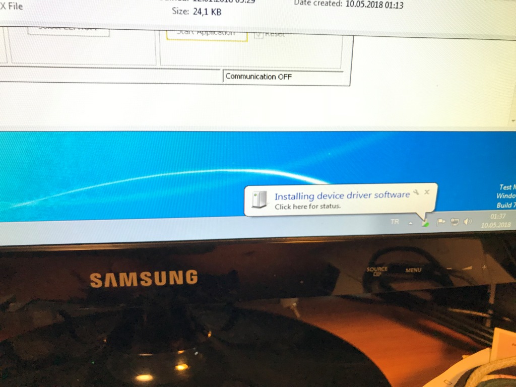 İşlem bittiğinde windows yeni bir cihaz bulduğunu bildirdi