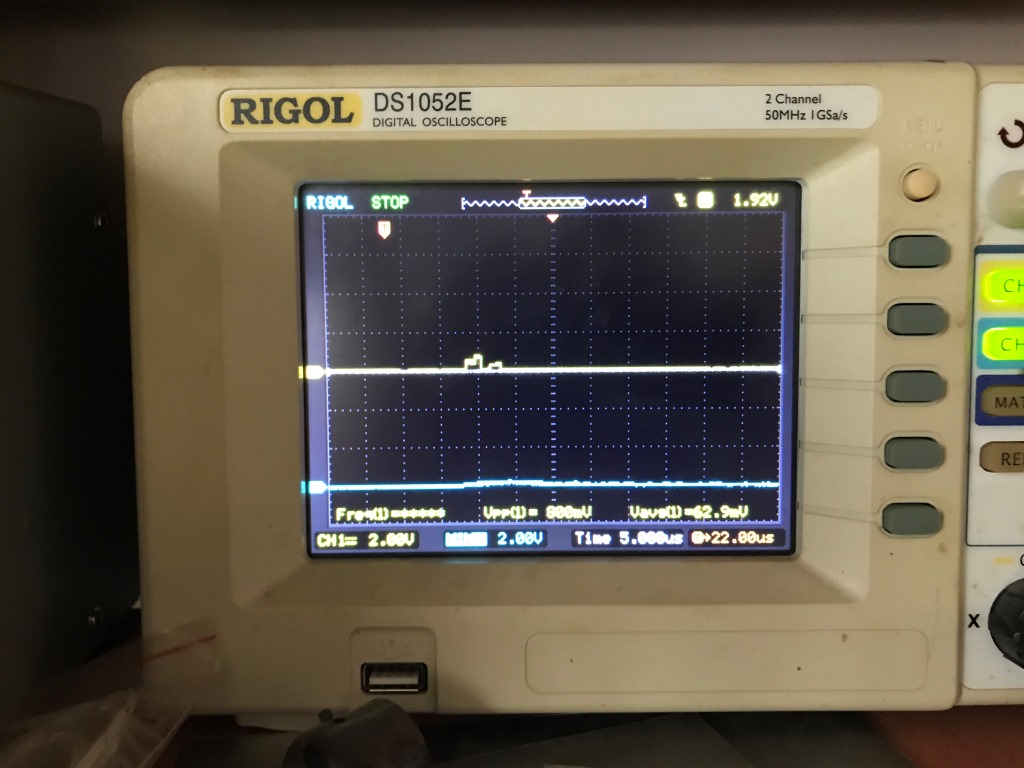 Ahanda sorunlu adres hattını bulduk galiba. Burada +5V ve 0V arasında oynaması gereken sinyal yerine sıfıra yakın minicik hareketler var.