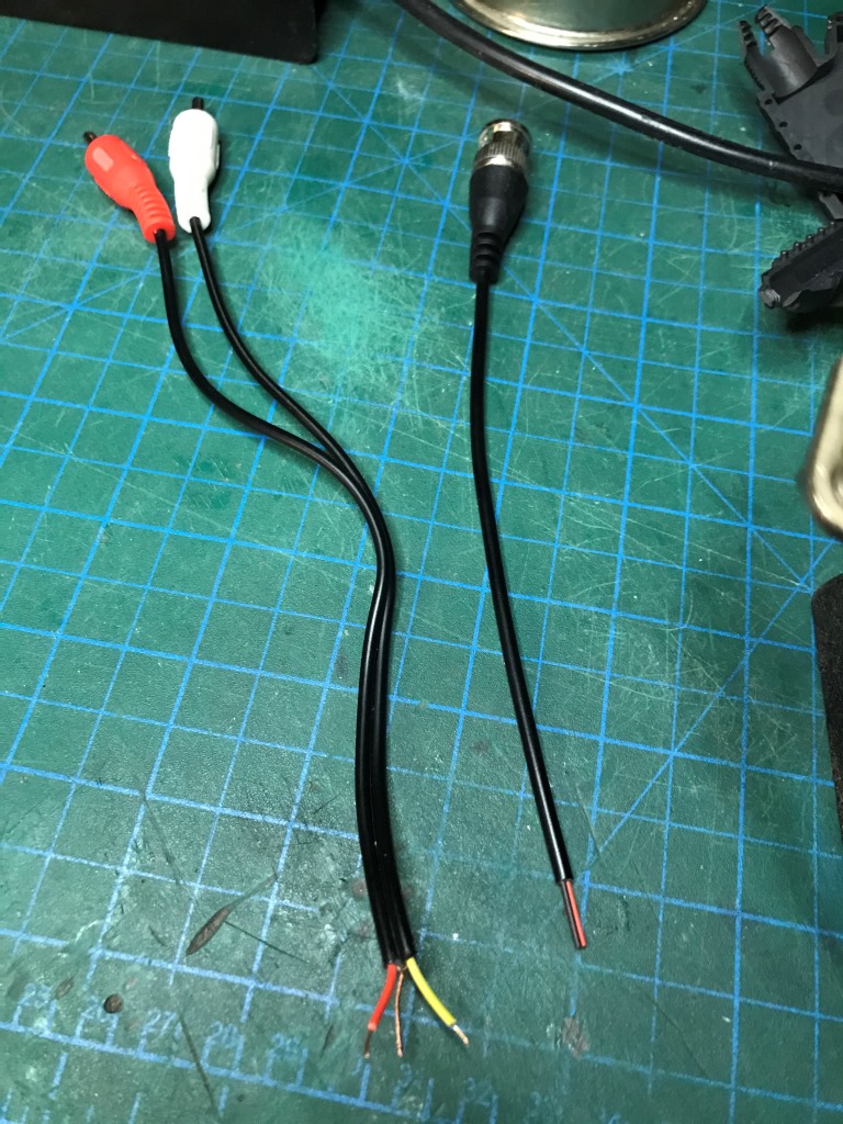 Sonra mevcut kablonun lehimleri söküyoruz. Merak etmeyin bu kabloyu hala kullanacağız ama bu uzunlukta değil. Sadece sarı renkli olan Composite video kablosundan kurtulmamız lazım. Audio (Beyz ve kırmızı) olan kablolar kalacak.