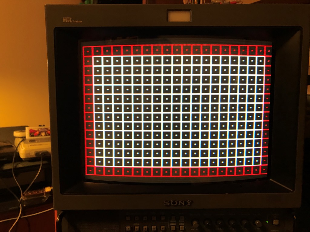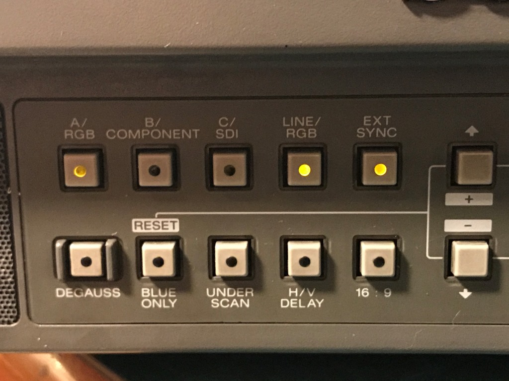 Sonra RGB kanalı seçip, harici senkronizasyon sinyali olduğunu belirten tuşlara basıyorum. Sizin PVM monitörünüzün ayarları farklı olabilir...