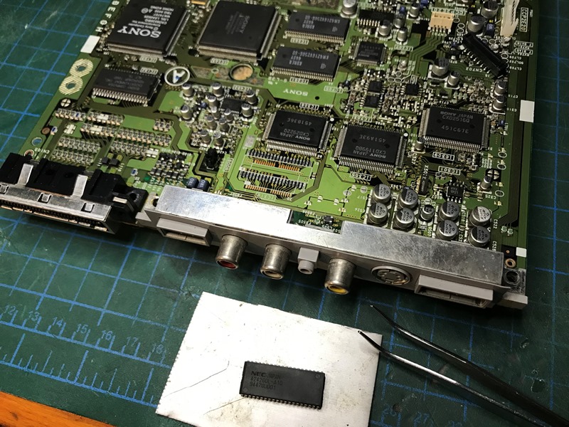 Bu çipi tamamen söküp yeniden lehimleyeyim derekn bacaklarının da yamuk yumuk olduğunu farkederek çipi komple yenisi ile değiştirdim (Sony ZN-1 anakartı sağolsun).
