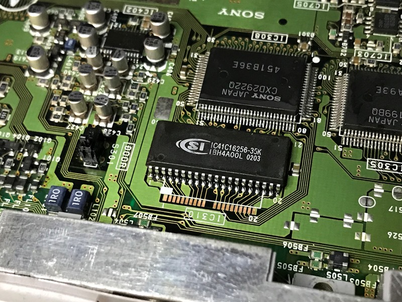 Anakart üzerinde ana RAM bloğuna geldiğimde 4 adet hafıza çipinden birisinin daha önce değiştirildiğini farkettim. Çip biraz eğri ve bacaklarındaki lehimler de fabrikasyon olmadığı kolayca anlaşılıyordu.