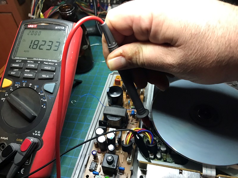 Bu voltajın standart bir Playstation'da 11.4 mV olması gerekiyormuş. Bizimkinde bu değer 10.8 mV. Bu çok az. Laser'in gücünün az olduğu anlamına geliyor.