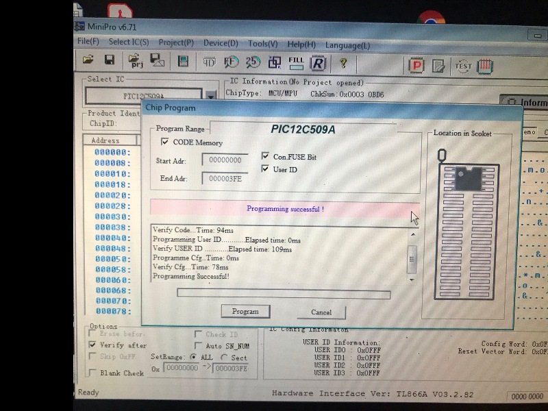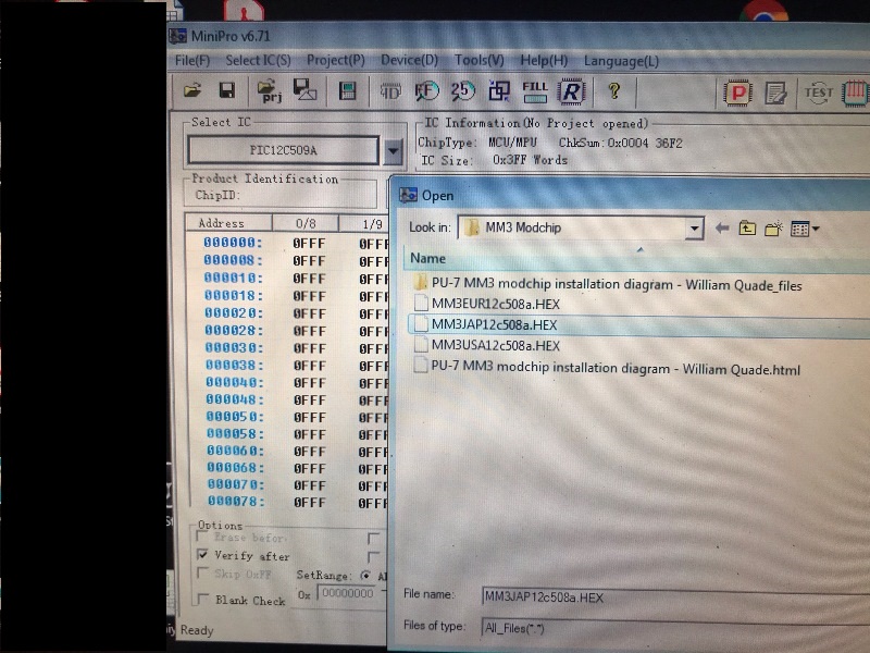 ve elimde PIC 12C509 da var. Yazıdaki paylaşılan modchip HEX dosyası 508 ve 508A için ama sorun değil zira 508A ve 509A arasındaki tek fark 509 da daha fazla memory olması. Kod tamamen uyumlu.