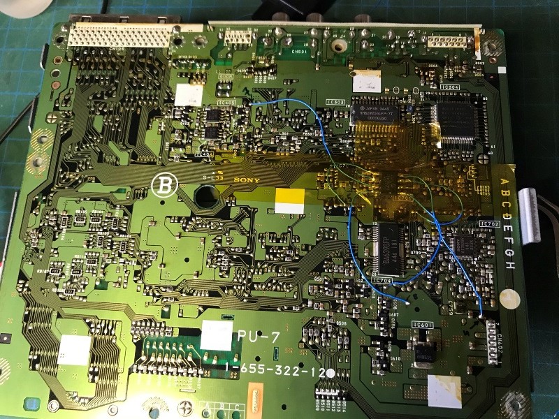 PU-7 anakart için "stealth" yani modchip tanıyan oyunlardan gizlenmiş şekilde (olduğu iddia edilen) çalışması için belirlenen lehim yerleri bunlar.