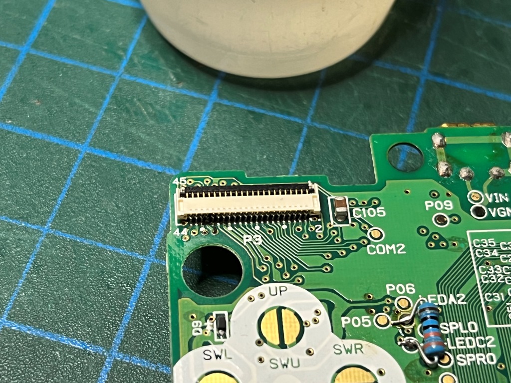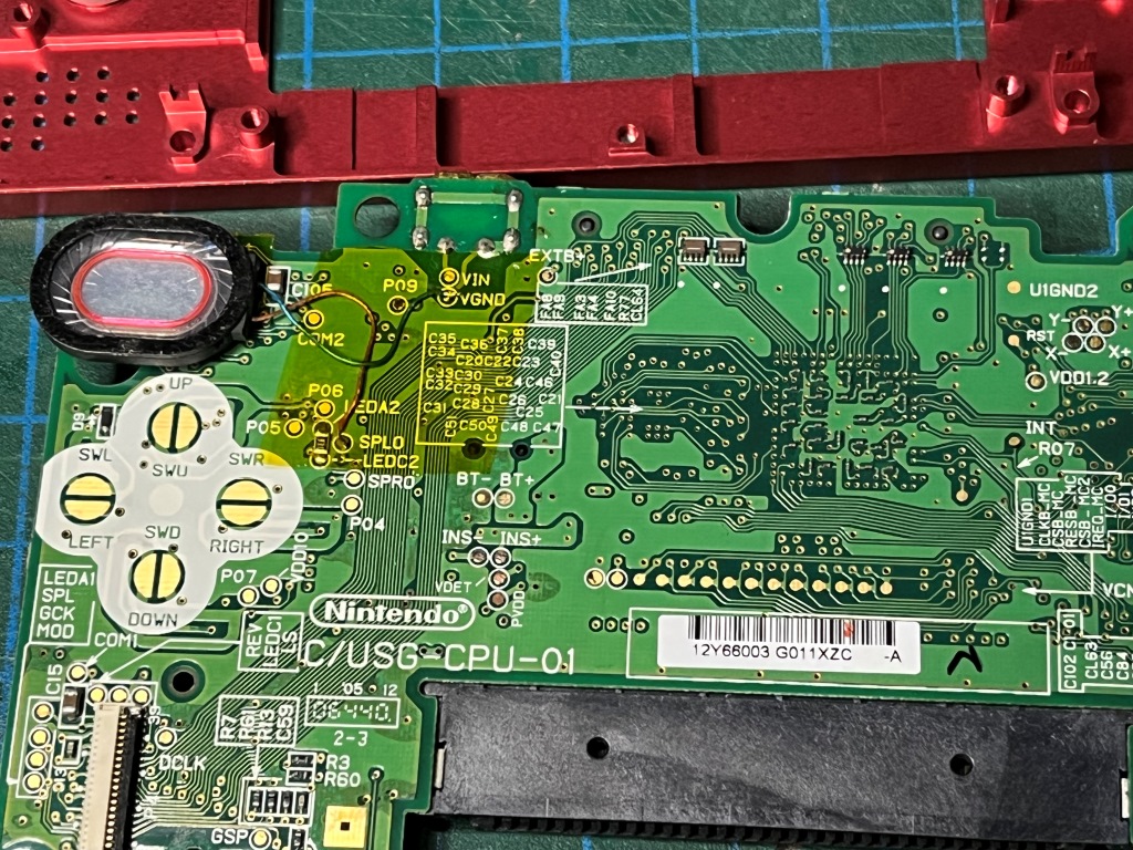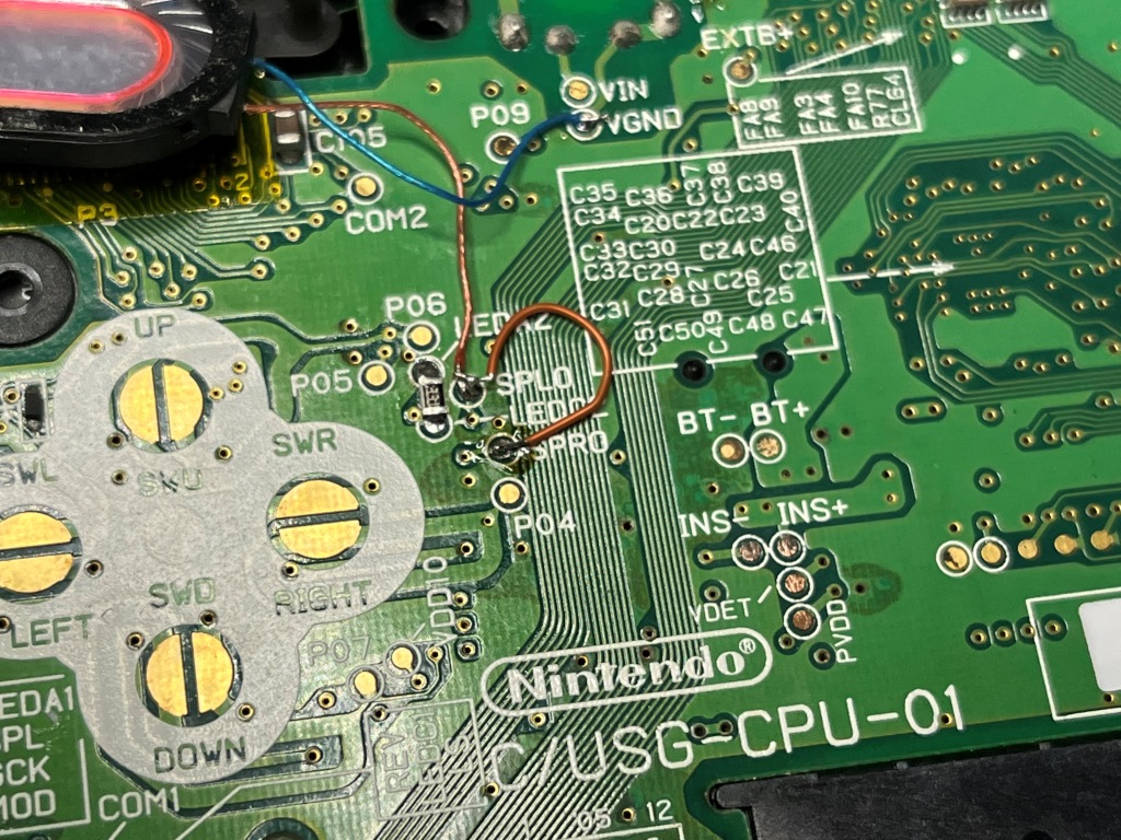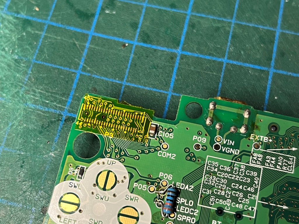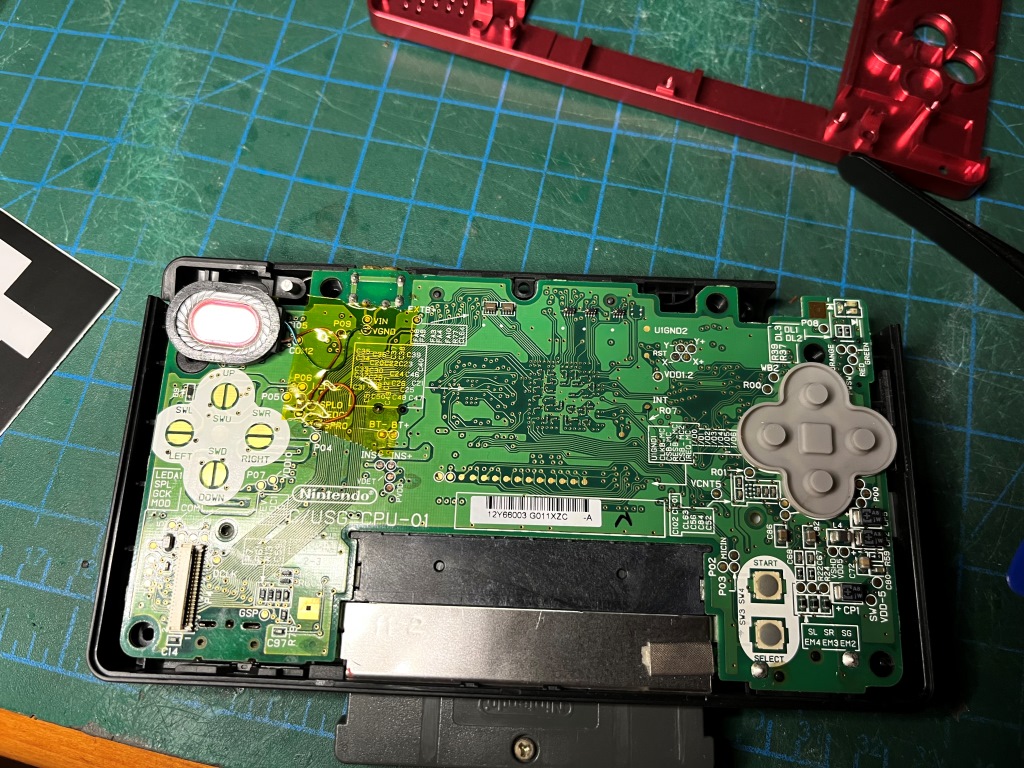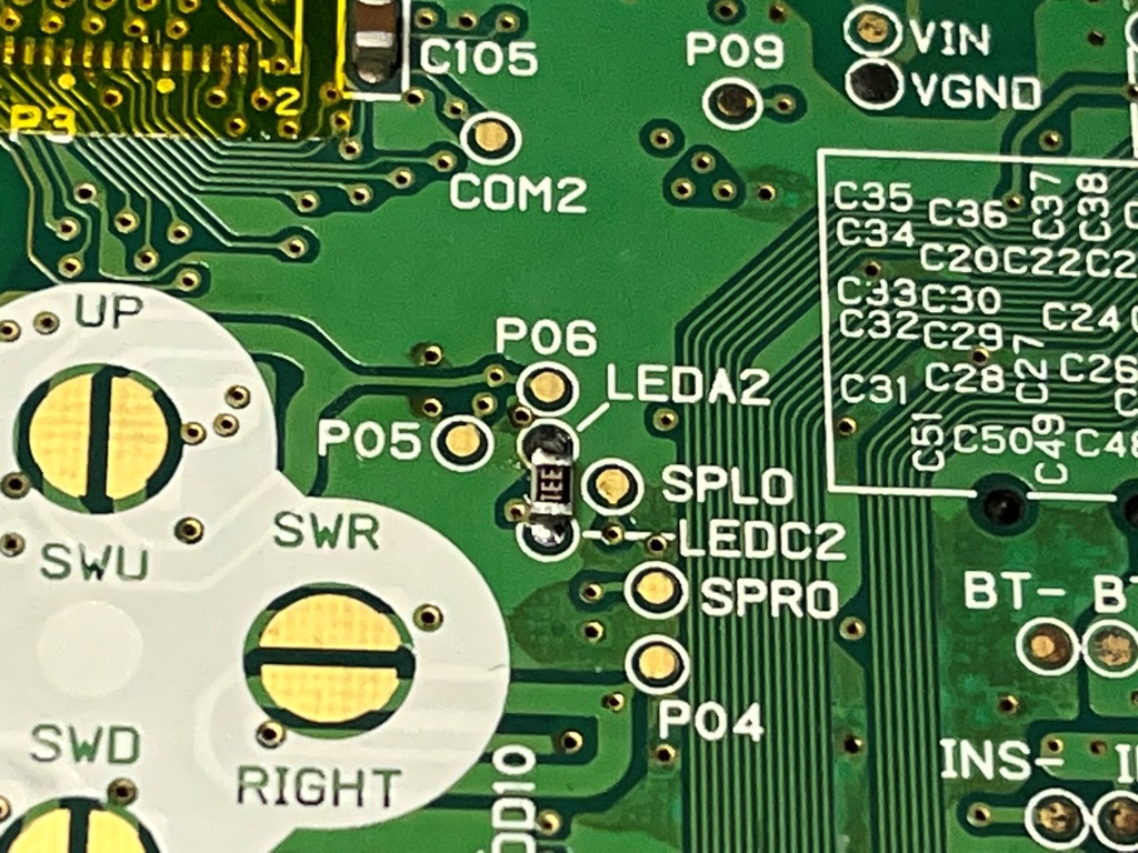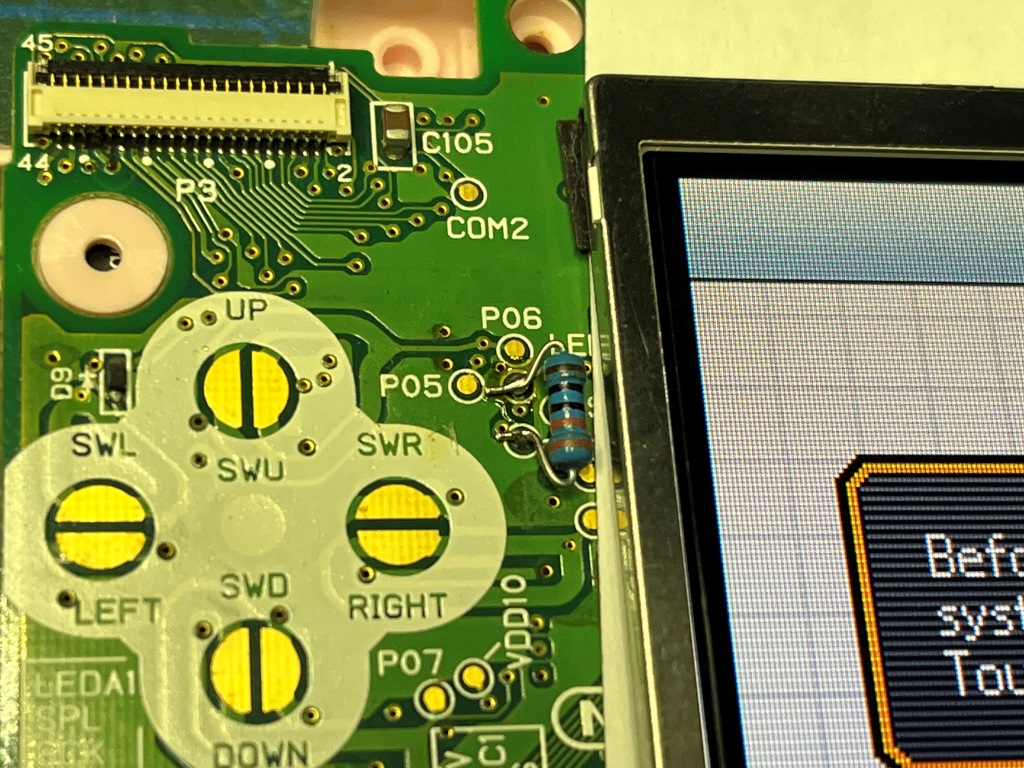 DS Lite'ın üst ekranı olmadan çalışabilmesi için bu MACRO projelerinde küçük bir trik var, bu gösterdiğim kontak noktalarına (LEDA2 LEDC2 yazan yerlere) 330Ohm'luk bir direnç lehimliyorsunuz, DS Lite üst ekran var zannediyor ve açılıyor