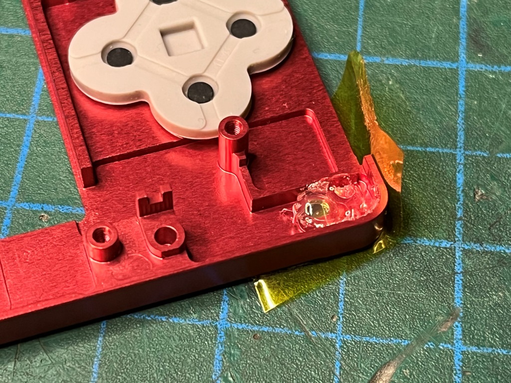 Deliğin arkasını kapton bantla kapatıp buraya biraz sıcak silikon damlatıyoruz...