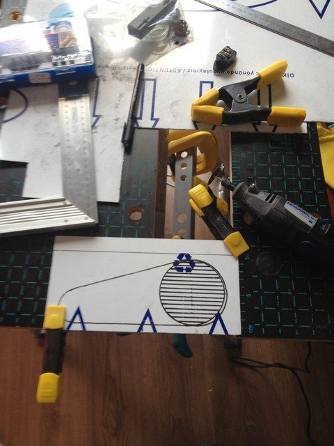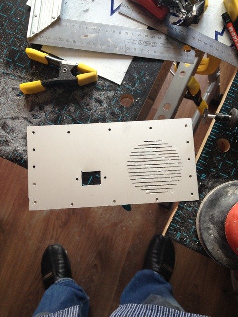 Sonra Dremel ile plakayı kesiyorum. Havalandırma deliğini açmak biraz zamanımı aldı tahmin edersiniz.