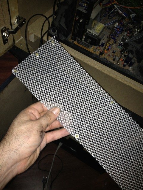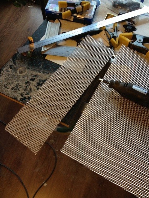 Kabinin üst havalndırma deliğinin arkası için eski projeden kalan fazladan delikli aluminyum levhayı kullanacağım.