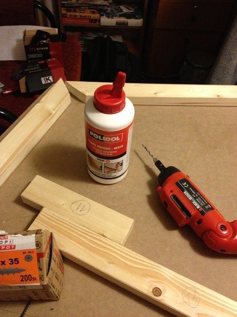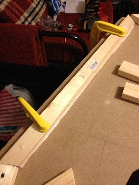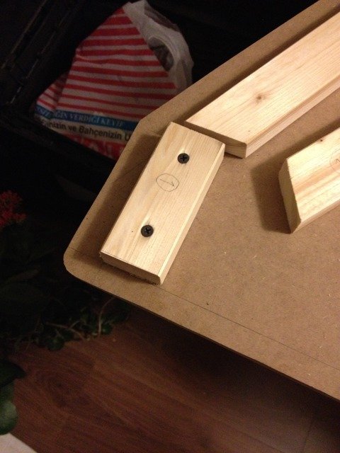 Bu şekilde devam ediyoruz. Tutkalla, mengene ile hafif sabitle, kılavuz delik aç, vidala...