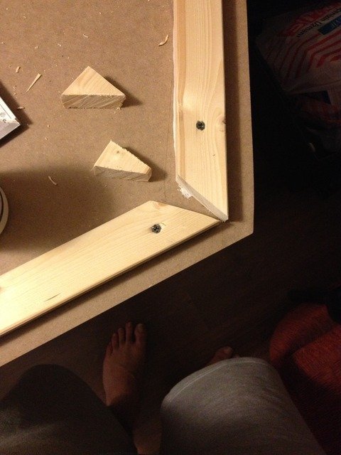 Gördüğünğz gibi çıtaların ölçüsünün çok da önemi yok demiştim. Ama burada biraz abartmışım. Köşede çok boşluk var. Yapımın sonraki aşamalarında aradan boya sızabilir veya tam köşe olduğundan ışık falan çıkabilir dışarıya. Ne biliyim, gözüme kaba gözüktü kısaca