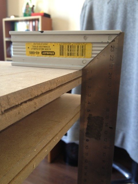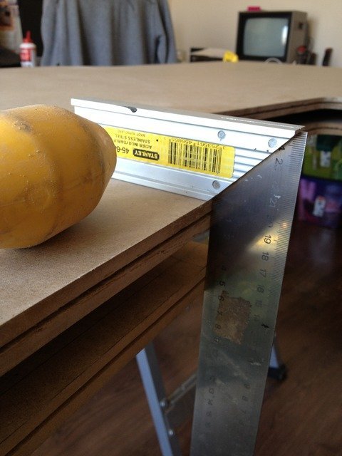 Marangoz cetvelimizi alarak en alt köşeden hizalamaya başlıyoruz, hafif hafif. En alt köşeden başlama sebebimiz, kabinin ayakta dengeli durabilmesi için en önemli kısmı burası da ondan. Burasını doğru yapmalıyız...