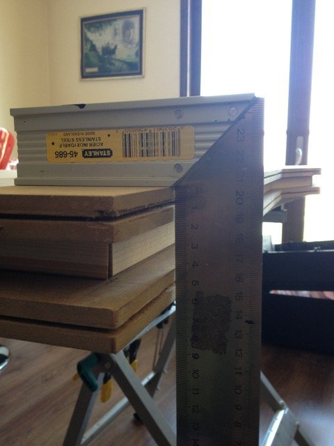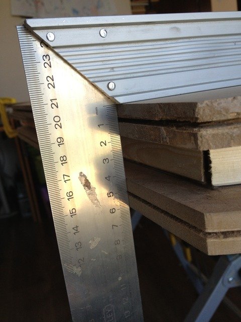 Hizalama tatminkar ise (fark 1mm den az olmalı) Sonra bu köşeyi mengeliyoruz, çok sıkı değil (çok gevşek de değil  Masum ). Yoksa diğer köşeleri oynatamayız. Diğer köşeleri de marangoz cetveli ile ayarlıyoruz.