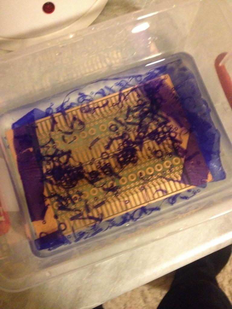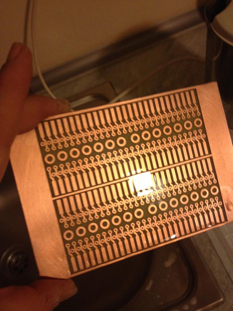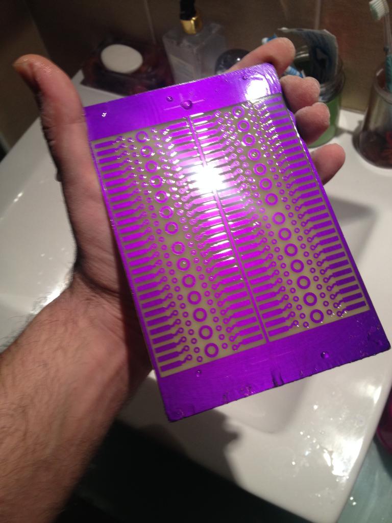 Fotoğrafta gördüğünüz kuru film tekniği ile ürettiğim fingerboard PCB'si. Bu aşamaya kadar nasıl geldim derseniz, kısaca "Evde PCB üretimi" yazımda bu tekniğin detaylarını anlatmıştım, merak edenler oraya bakabilir =>
