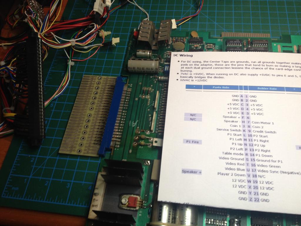 Neyse ki Pacman'i standart bir arcade DC güç kaynağı ile de beslemek mümkünmüş. Bunun için girişdeki 2 diyodu bypass edip karta direk DC voltaj verecek pin dizilimi de bu internet sitesinde mevcut.