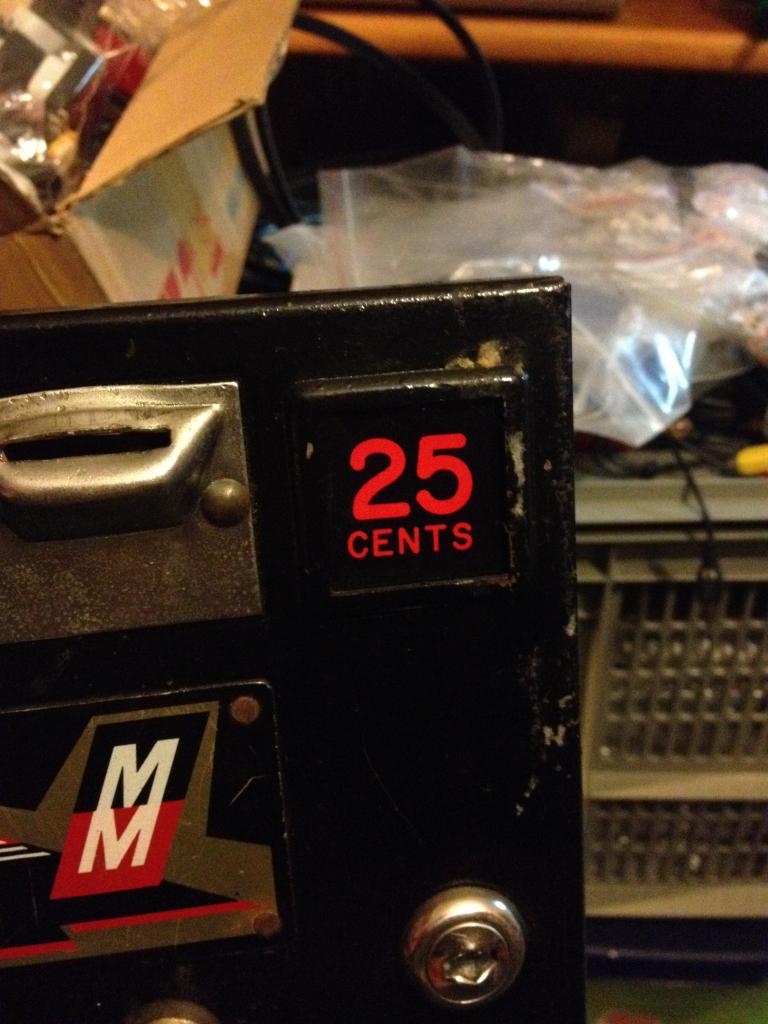 Jeton kapısı geçen projelerimde yaptığım gibi suntadan değil, gerçek bir Bally Midway jeton kapısı. Bu kapının arkadan ışıklandırmalı 25 cent yazan minik cam kare pencereleri var. Butonları buraya yerleştirmeyi planlıyorum.