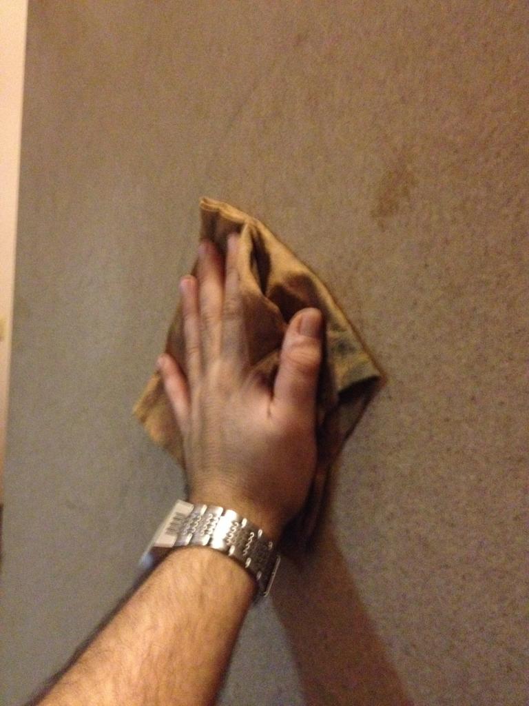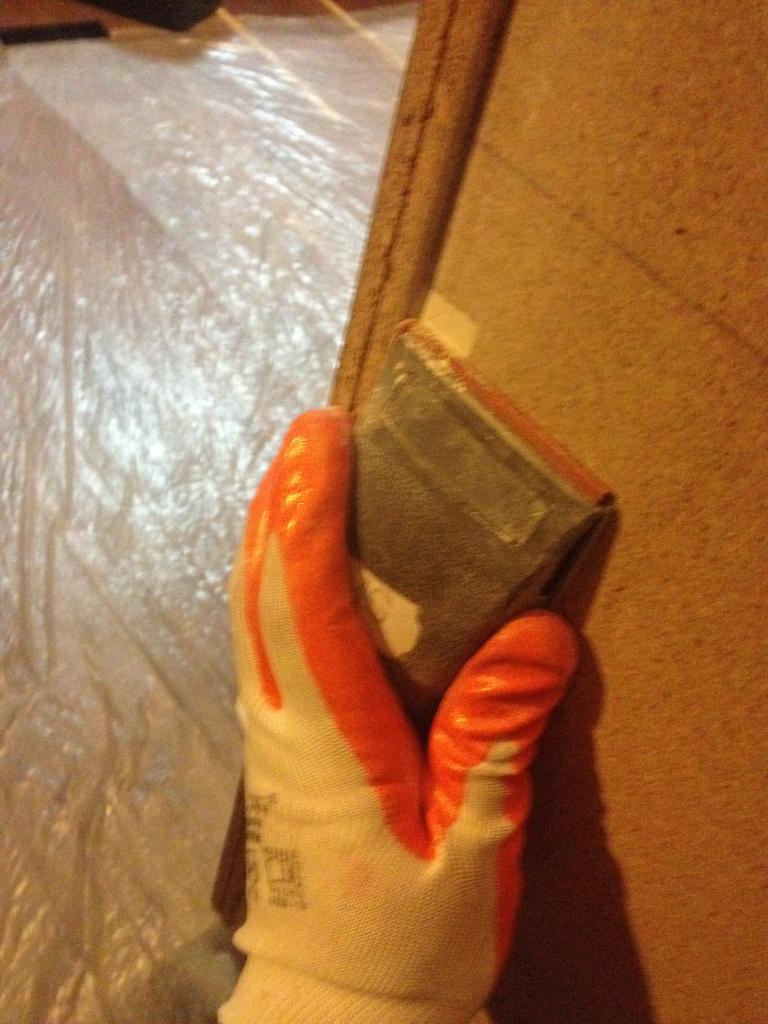 İşim bitince tüy/iplik bırakmayan iyi sıkılmış ıslak bezle kabinin zımpara tozunu temizliyorum.